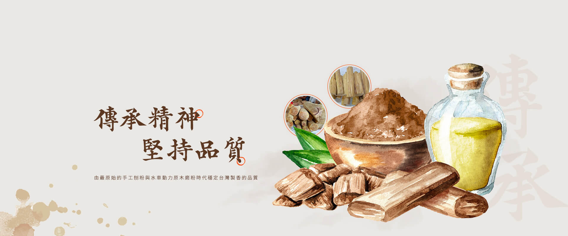 创立于民国36年,从最原始的手工刨粉与水车动力原木磨粉时代,将制香所需原物料一步一脚印的找出来,成为台湾制香业的供应商好朋友。